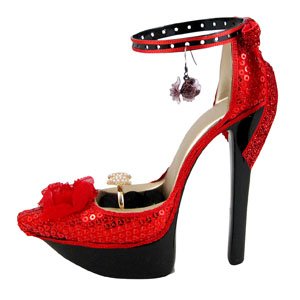 -. Brand : JewelryNanny -. Department : womens -. Feature : Stylish slingback shoe is capable of displaying both earrings and rings / Made of polyresin, cushion, sequin and rosette detailing / Beautiful accent for any room / Matching organizers are available in our store / Measures 5.5"L x 1.5"W x 5.25"H -. Label : JewelryNanny -. Manufacturer : JewelryNanny -. ProductGroup : Kitchen -. ProductTypeName : KITCHEN -. Publisher : JewelryNanny -. Studio : JewelryNanny -. Title : Sequined Rose Slingback Shoe Ring and Earrings Holder