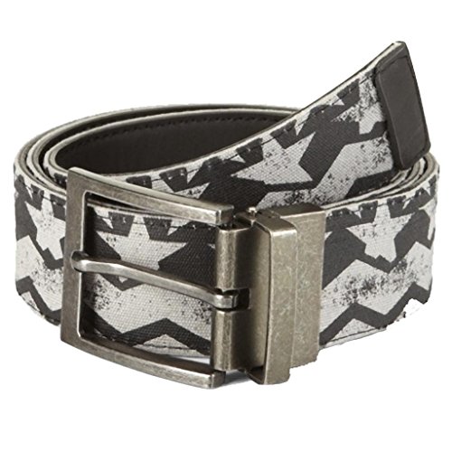 Men's canvas and urethane reversible belt with a gray and black star and chevron print on one side, solid black on the other. Size Large (38-40)