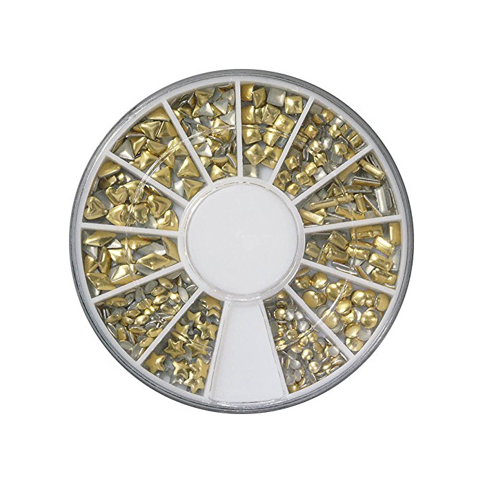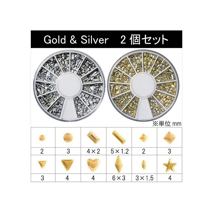원본상품명: メタルスタッズ12種類 ネイル用 ゴ?ルド&シルバ? ラウンドケ?ス入2個/セット