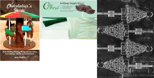 Cybrtrayd Tree with Angel Lolly Chocolate Mold with Chocolatier's Bundle of 25 Lollipop Sticks, 25 Cello Bags, 25 Green Twist Ties and Chocolatier's Guide