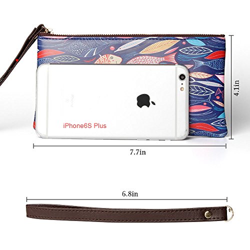 -. Feature : Dimension:7.8*1.1*4.1'' / Material:Soft PU Leather / Inside Details: 4 card slots, 1 separate zipper pocket / Occasion:Shopping, Walking, Work, Groceries, School etc / Capacity:can held iphone 7Plus, cards, cash, keys, checkbooks, bills, lipsticks etc
