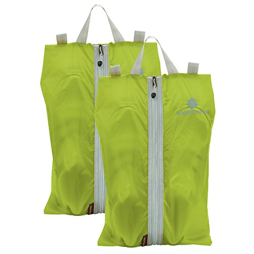 Studio : Eagle Creek Publisher : Eagle Creek Binding : Apparel Product Description Keep clean clothes from intermingling with dirty shoes with Eagle Creek's pack-it specter?shoe sac set. This set comes with two shoe sacs because although we often try to bring only one pair of shoes on a trip, sometimes we end up with two or three. Each shoe sac is made of an ultra-light, water-repellent, silnylon translucent material that allows for quick visibility. They have a carry handle and a zipper that runs down the front for easy access. 0