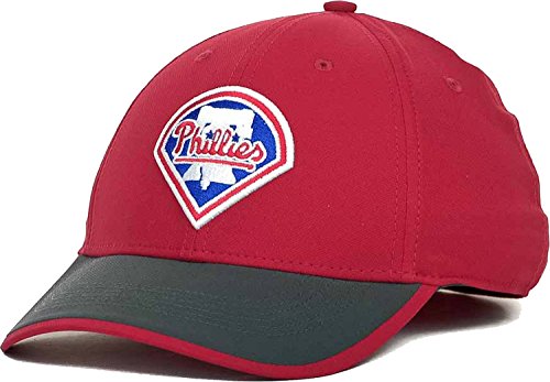 The Nike Philadelphia Phillies MLB Logo Legacy91 Swooshflex Stretch Dri-FIT Cap Hat features a raised embroidered team logo on the front panels, embroidered Nike swoosh mark on the back, and "Dri-Fit" text on wearer's right side. Six panel construction with eyelets. Stretch fit on closed back. Officially licensed.Feature