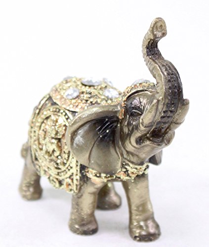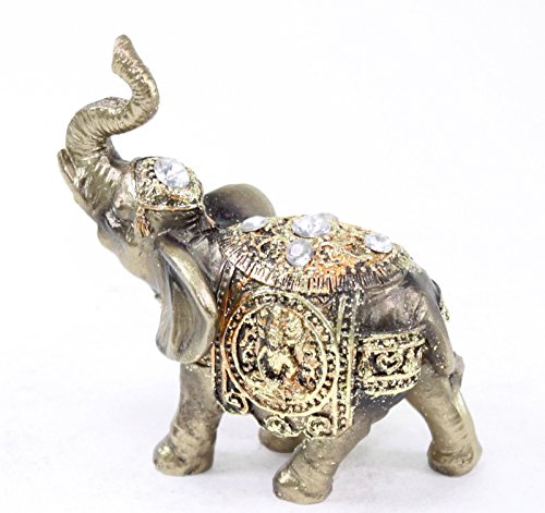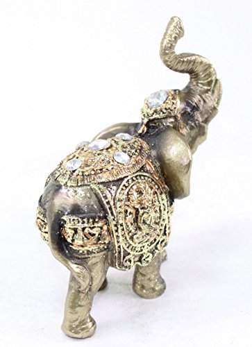 - Antique style statue with the trunks facing upwards to represent prosperity, good luck, and success!! The cloak is finely engraved with buddha and beautiful fancy flower pattern with striking gold color.