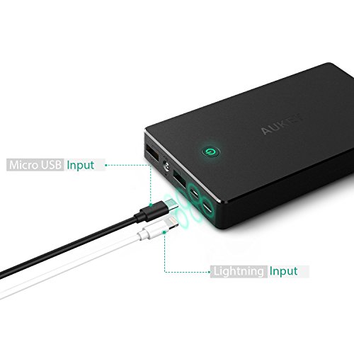 -. Title : AUKEY 20000mAh Portable Charger with Quick Charge 3.0 & Lightning Input, 2 Outputs for iPhone, iPad, Samsung and More