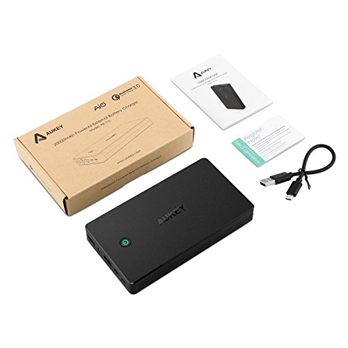-. Feature : Quick Charge 3.0 - Charge compatible devices up to 4 times faster than conventional charging (Note: Cannot quick charge Samsung Galaxy Note 7) / 20000mAh Portable Battery - Fully charge your iPhone 6s 7.5 times or a Galaxy S7 4.4 times, or an iPad Air 1.5 times / Adaptively charges all 5V USB powered devices including Android and Apple devices at up to 2.4A / Built-in safeguards protect your devices against excessive current, overheating, and overcharging / Package Contents: AUKEY 20000mAh Power Bank, Micro USB Cable, User Manual, 24 Month Warranty Card