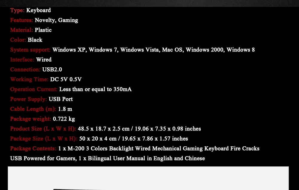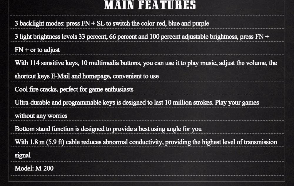 1 x M - 200 Backlight USB Wired Gaming Keyboard (English Version)