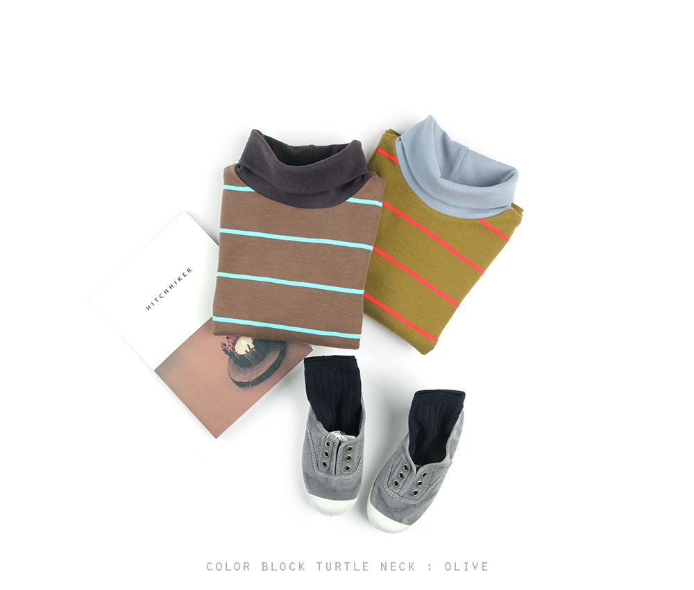 컬러 배색이 돋보이는 부드러운 터틀넥입니다:)