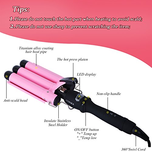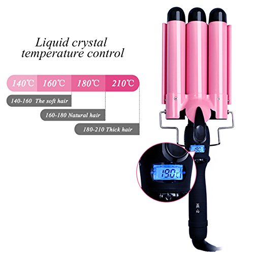 - Three barrel curing iron, Dual voltage (100-240V), PTC Heater, Heats Up To 210℃(That's 410℉) in 60s, heating up very fast, you will have the most beautiful hairstyle with the least time for your party