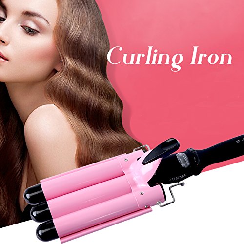 Three Barrel Curling Iron Fast Heating Curlers for Long Hair Waving Irons (One Size, Pink)