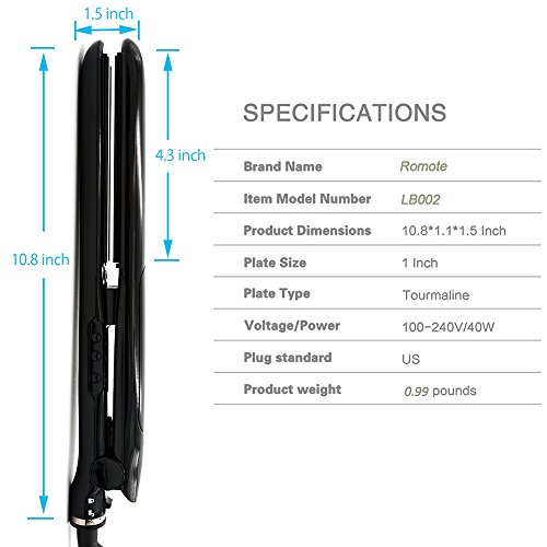 Romote 1 Inch Titanium Flat Iron Anti Static Steam Hair Straighten 3D floating plate Dual Voltage Suitable for All Hair Types (Black)