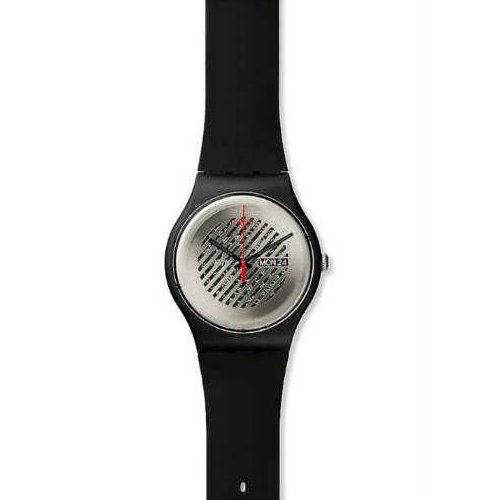 -. Title : SWATCH SUOB713 On The Grill Black Silver Day Date Dial Silicone Unisex Watch NEW