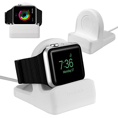 TomRich T90 Apple Watch Charging Station with Apple Watch Charger Stand Dock Holder for 38mm 42mm Apple Watch Band with Apple Watch Case - Milky White