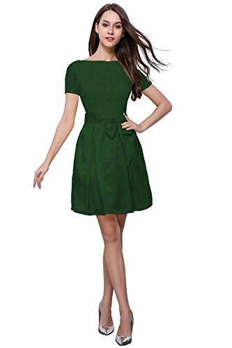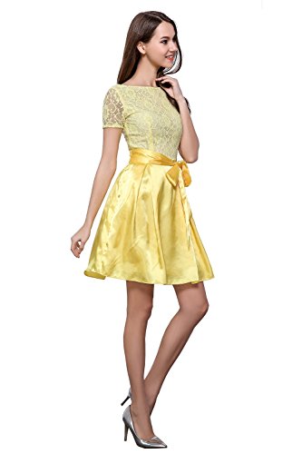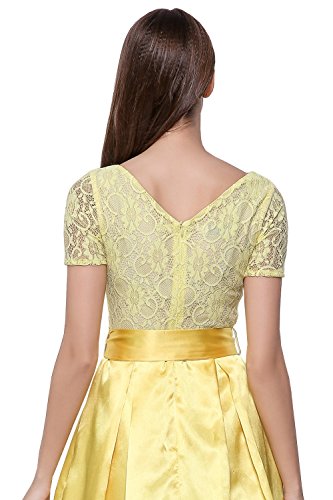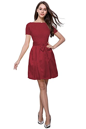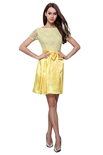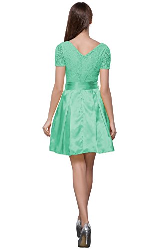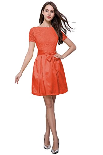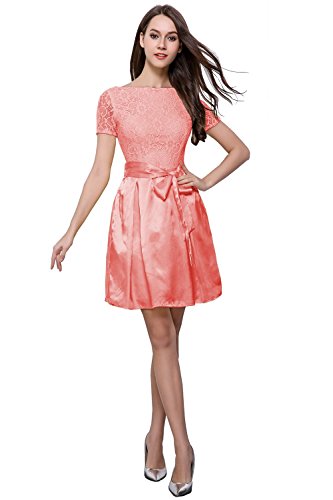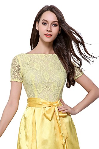 cute round neck short sleeves V-back evening wedding bridesmaid prom dress,soft lace&satin full-length