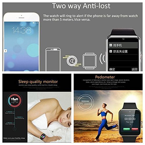 -. Title : Smart Watch GT08 Pedometer Fitness tracker Health Watch with SIM Card Slot for Android and IOS Apple iphone Smartphone Bracelet Smartwatch (Silver)