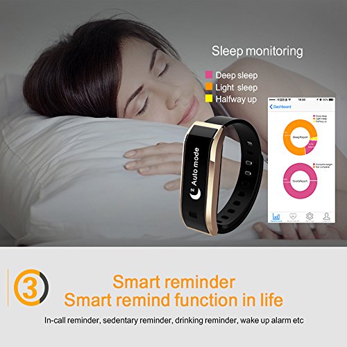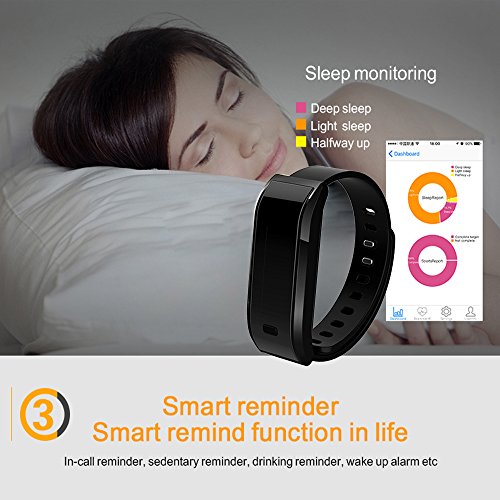 -. Feature : SMART WATCH: 0.91" OLED Screen, Bluetooth 4.1, Waterproof IP67. It is a device that measures your daily job and activity with quality products and services, with this device, you can actually experience the excellence and humanization design of the device, bring you a pleasant and enjoyable life / SNYC DATA: When bluetooth paired, you can sync your data to Android/IOS phone, it gives you real-time assessment of your exercise throughout the day / MULTI FUNCTIONS: Exercise heart rates monitor, Tracking steps, Distance measurement, Calorie consumption management, Monitoring your sleep cycle, Time displaying, Waking you up a silent wake alarm, Reminding you (for drinking, sitting for long time and other needs). When incoming calls are not answered in certain time or message arrived, the smart wristband will remind you by vibration / COMPATIBLE WITH: Android system 4.3 or above, iOS system 7.0 or above. Works with virtually any device. Great for use with smartphones, tablets, smart and sport watches, exercise equipment and many other devices / FIT FOR: runners, joggers, cyclists, hikers/climbers, skiers, health enthusiasts and more.