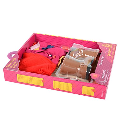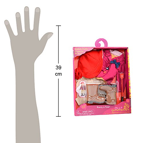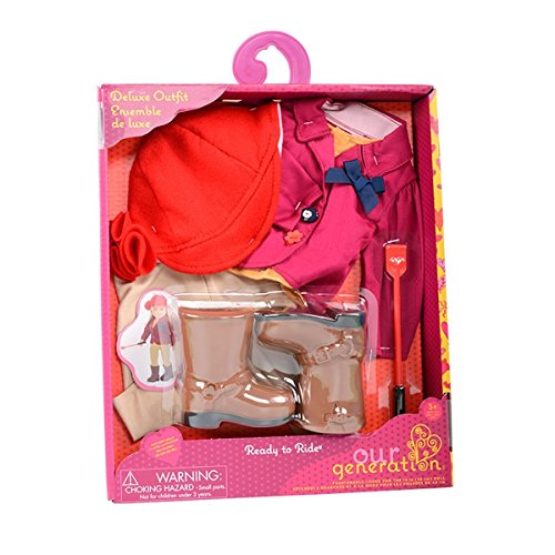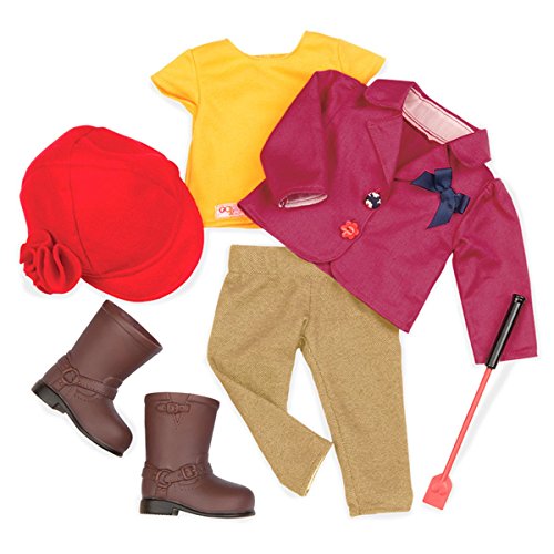 Nay Away! Make room for friendships and pony adventures. Includes: 1 t-shirt, 1 jacket, 1 pair of pants, 1 riding hat, 1 riding crop and 1 pair of boots.