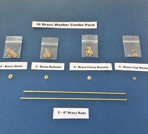 Feature : This is a 16 piece combination all brass pack which includes 4 - Dome, 4 - Bullseye, 4 - Fancy Rosette, and 4 - small Cup washers/collars used to repair of old straight razors. / These brass collars are made as exact replicas of the original collars made by Cutlers in the 18th and mid 19th centuries. The collars are stamped/punched from 26 guage brass sheets. / The 16 brass collars/washers and rod stock are unough to repair 4 straight razors. / Washers come unpolished. / They will shine up nicely for you with little effort using brasso or other polishing compounds.