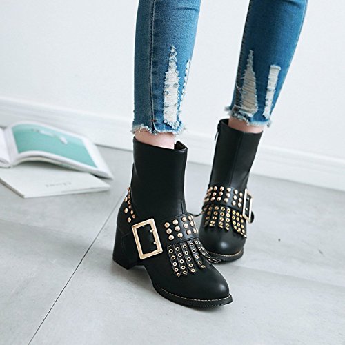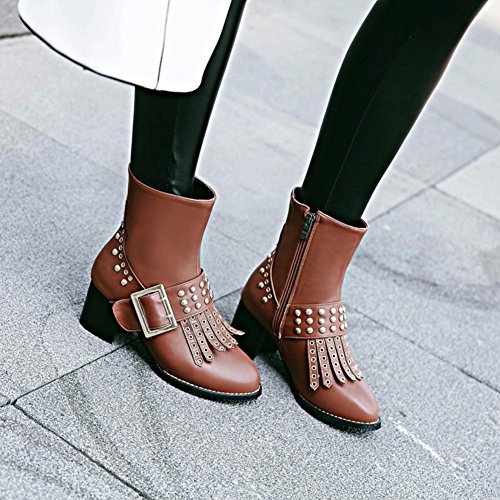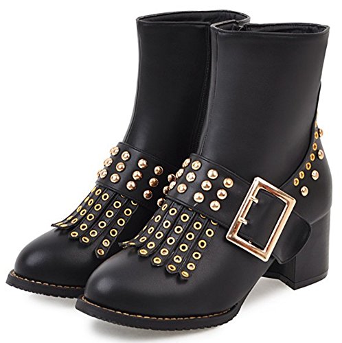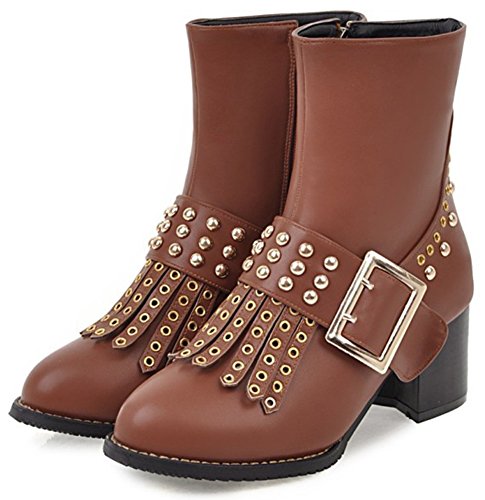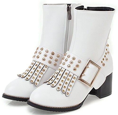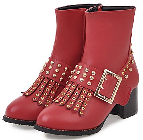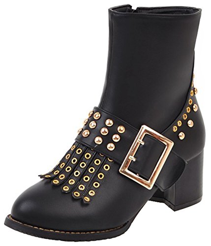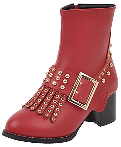 (Mofri)/Women's/Boots/DIRECT FROM USA/Mofri Women's Stylish Studded Rivets Fringes Buckle Belt Block Medium Heel Round Toe Side Zippe...
