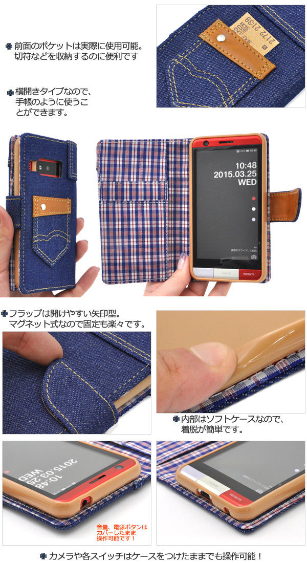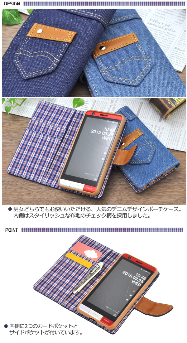 INFOBAR A03 KYV33用 デニムデザインケースポーチ(ジーンズデザイン)
