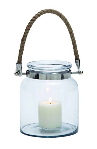 -. Title : Woodland Imports Stylish and Exquisite Glass Metal Lantern with Sturdy Rope Handle