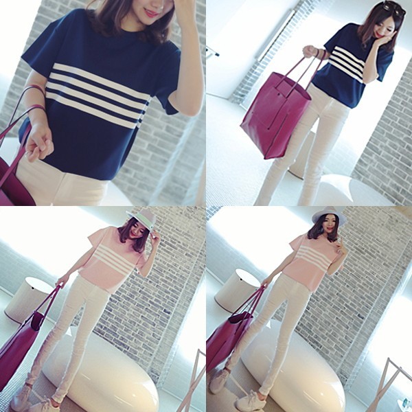 | 商品名 | 半袖 ボーダー 4本ラインTシャツカットソー トップス |