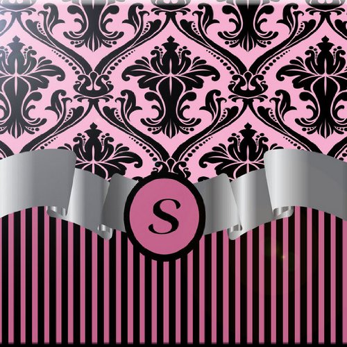 Rikki Knight RK-12intilec-2198 12" X 12" Letter "S" Light Pink Damask Stripes Monogrammed Design Ceramic Art Tile