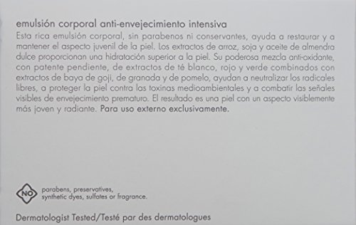 June Jacobs Intensive Age Defying Body Emulsion is arch body emulsion that helps restore and maintain skins youthful appearance. The formula of rice and soy extracts, sweet almond oil and other botanicals provide superior moisture to the skin, protect skin from environmental toxins and combat the visible signs of premature aging. The result is visibly younger, radiant looking skin.Feature