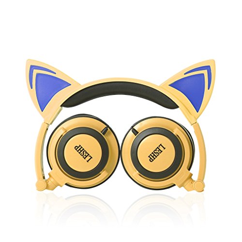 -. Title : Kids Safe Headphones,LESHP Flashing Glowing Cosplay Fancy Cat 3.5MM Ear Headphones Foldable Over-Ear Gaming Headsets Earphone with LED Flash light - Pink