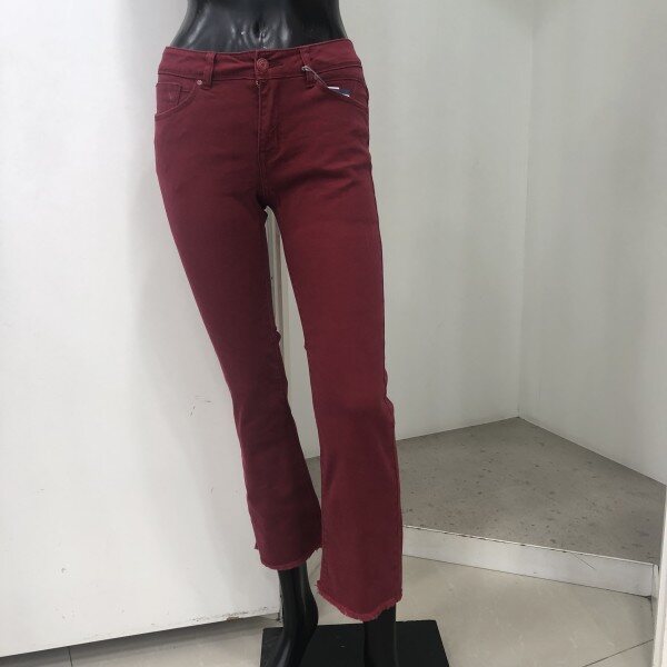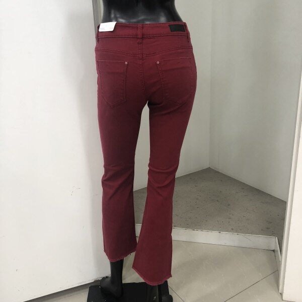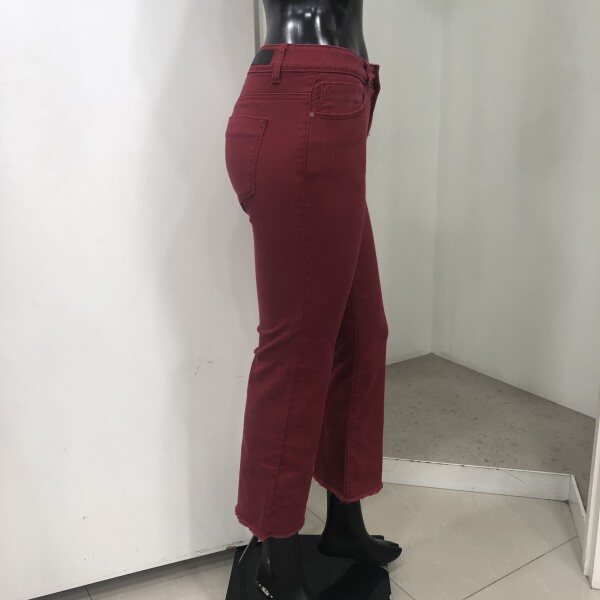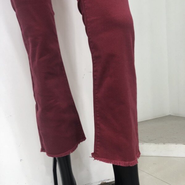 스키니핏처럼 허리부터 무릎까지는 타이트하게 감싸줘 라인을 부각시켜주고 무릎에서 발목으로 갈수록 크지않게 넓어지는 핏입니다. 발목이 보이는 크롭 기장이며, 타이트한 착용감을 보완하기 위해 스판성 좋은 소재을 사용하여 활동성을 강화시킨 제품입니다.