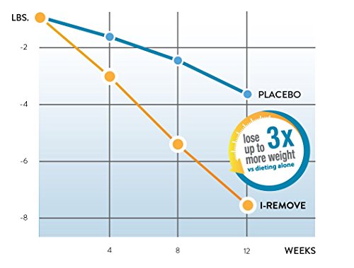 Superior weight loss efficacy was proven by 12-week clinical trials involving human overweight and obese subjects (males and females, 18-60 years old, with BMI between 25-35). Studies show that I-REMOVE increases weight loss up to 3x more than dieting alone. No adverse side effects were reported. 92 percent of the participants continued to lose weight or maintained weight after 24 weeks.