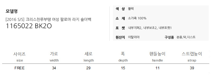 사이즈 사이즈 : 34cm x 29cm x 15cm(가로x세로x폭)