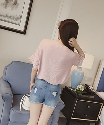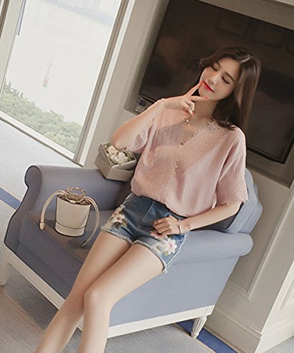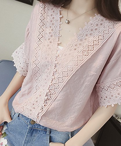 -. Title : (シャンディニー) Chandeny エレガント レース ブラウス レディース 半袖 刺繍 おしゃれ フェミニン 大きい 09039 ピンク M サイズ