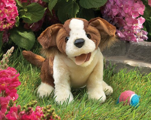 Eager as only a Lucky Dog can be, this hand puppet from Folkmanis is more than ready for playtime and slurp kisses. Animate his mouth with one hand and wag his tail with the other and you'll have people lining up to adopt him. How can you resist those big brown eyes when this little shelter dog begs so wholeheartedly for a forever home? Ideal for use in interactive stage and puppet theater, Folkmanis Puppets are also great for teaching, daycare, school, pretend play, games and parties, or to pair with a book for storytelling. Easy to feed and care for, just add lots of love and snuggly fun. This puppet measures 14 x 6 x 9 Inch (LxWxH). Folkmanis has been encouraging young imaginations to blossom since 1976 with its innovative and engaging specialty puppets, promoting creativity and discovery while winning nearly every industry, child development and kid-tested award. Folkmanis has grown to become the premier manufacturer of plush puppets worldwide, offering over 200 of the most heartwarming and realistically designed creatures--both exotic and familiar--on the market today. (Birthday: July, 2013).Feature