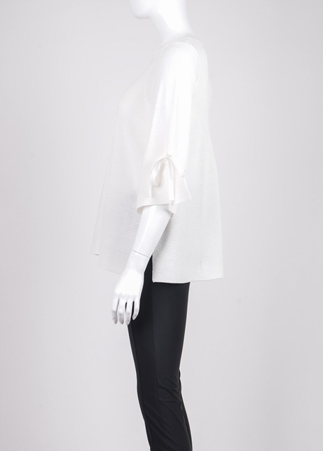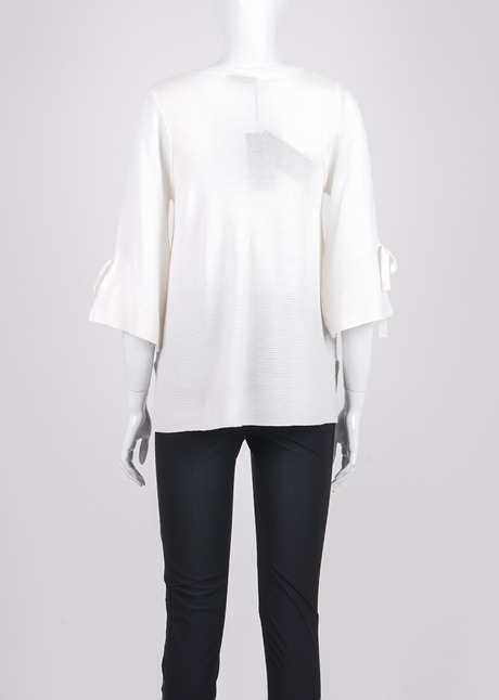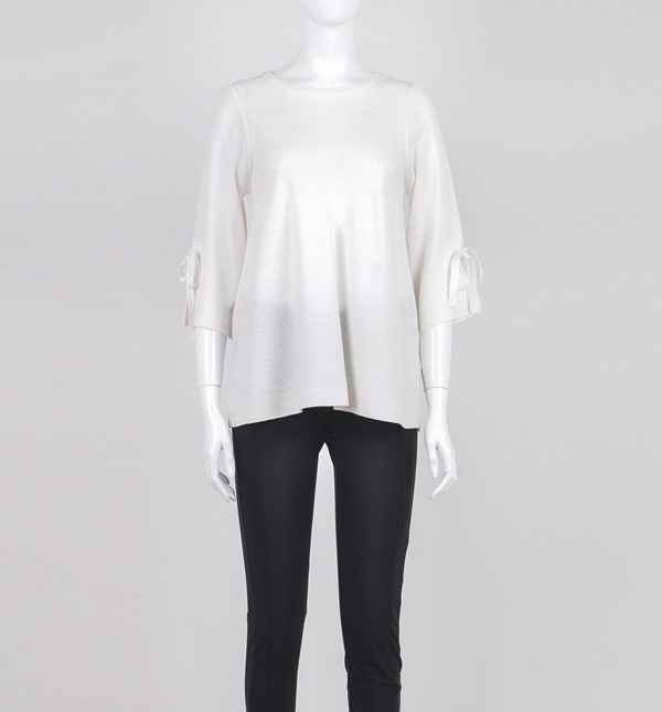 소매라인리본이 여성스러운 미디움기장의 살짝 A라인 니트입니다.
