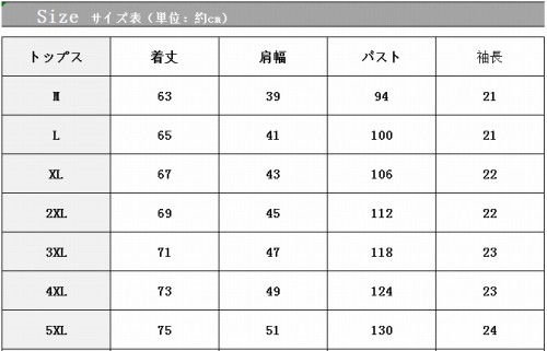 【5XL】バスト約130cm 丈約75cm 肩幅約51cm 袖丈約24cm