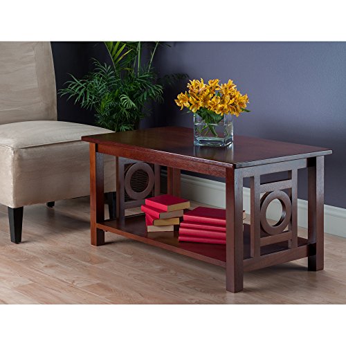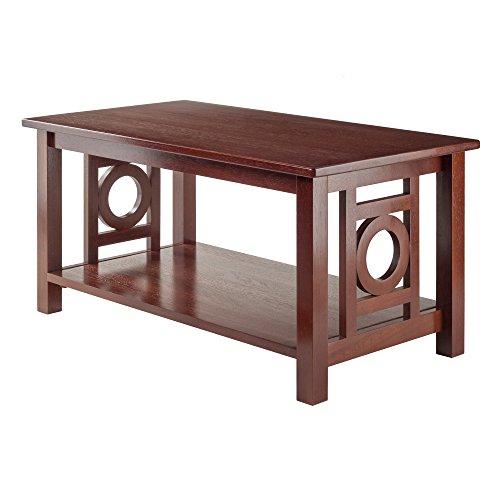 -. Feature : Dimensions: 37W x 20D x 18.03H in. / Solid wood construction / Walnut finish / Top plus base shelf / Open side detailing