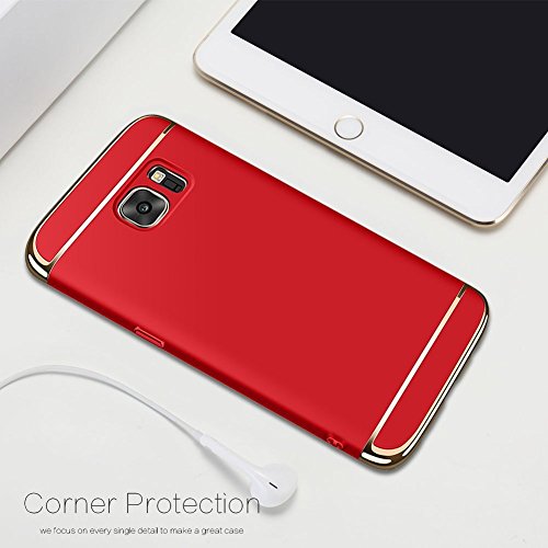 Galaxy S7 Case Ultra Slim Scratch-Resistant Shockproof Reinforced Hard Bumper Electroplate Frame Back Cover For Samsung phone -- ( Red )