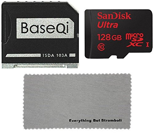 BASEQI aluminum microSD Adapter for MacBook Air 13" and MacBook Pro 13"/15" (Non-Retina) with SanDisk Ultra 128GB microSDXC UHS-I Card & Adapter, & Everything But Stromboli Microfiber Cloth