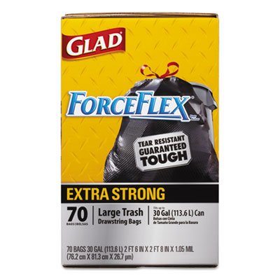 -. Title : Drawstring ForceFlex Large Trash Bags, 30 x 32, 30gal, 1.05mil, Black, 70/Carton, Sold as 1 Box, 70 Each per Box