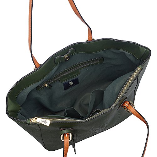 -. Brand : U.S. Polo Assn. -. Department : womens -. Feature : Adjustable buckle top handles / Full-size zip pocket on front panels / Exterior zip pocket on back panel / Custom logo zipper pull / Removable dangling signature U.S. Polo Assn. logo tag -. Label : U.S. Polo Association -. Manufacturer : U.S. Polo Association -. PackageQuantity : 1 -. ProductGroup : Shoes -. ProductTypeName : HANDBAG -. Publisher : U.S. Polo Association -. Studio : U.S. Polo Association -. Title : U.S. Polo Association Logo Signature Embossed Tote US Polo Assn Logo Signature Embossed Logo Sleek and structured organizational tote.