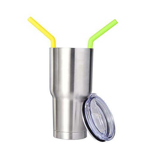 Outus Reusable Drinking Straws Silicone Straw Angled Drinking Straw with Cleaning Brush for YETI/ RTIC Rambler Tumbler Straw Lid 30 Ounces/ 20 Ounces, 8 Pieces