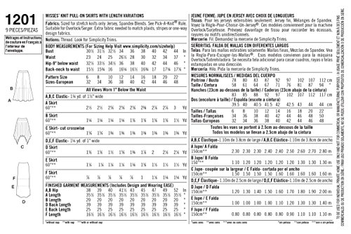 Simplicity Creative Patterns 1201 Misses' Pull-On Knit Skirts with Length Variations, H5 (6-8-10-12-14)