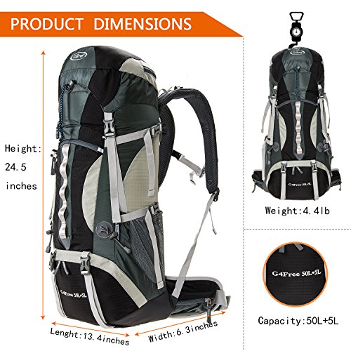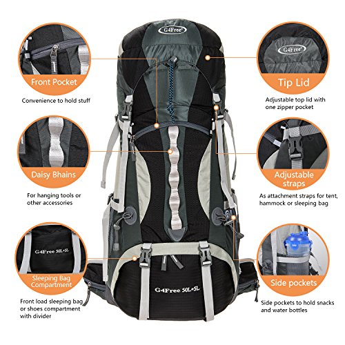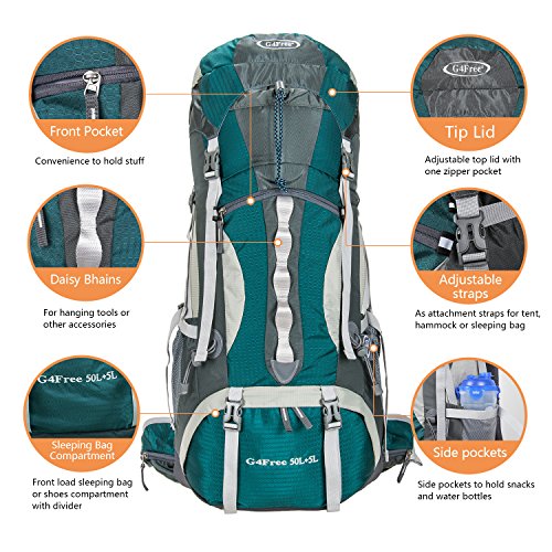 -. Title : G4Free 50L+5L Outdoor Sport Water-resistant Internal Frame Backpack Hiking Backpack Backpacking Trekking Bag with Rain Cover for Climbing,camping,hiking,Travel and Mountaineering