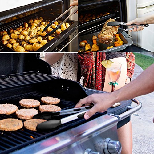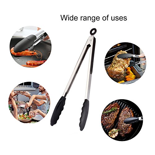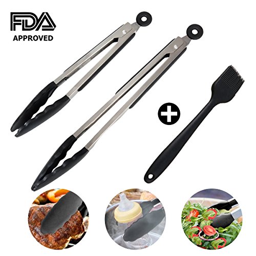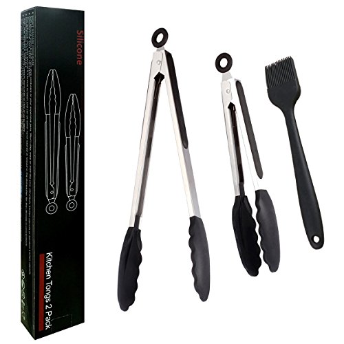 - 2 x silicone tongs(9" and 12"), black - 1 x silicone oil brush(8"), black 0
