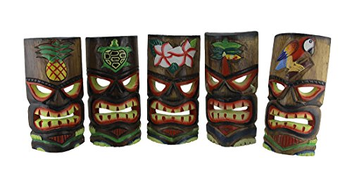 This set of 10 awesome Polynesian style wall masks is hand-carved from wood, then hand-stained and hand painted. Each mask measures approximately 11 inches tall, and 4 1/2 to 5 inches wide. They look great on walls in patios, living rooms, offices, bedrooms, even in kitchens.These wall masks makes a great gift for friends and family. NOTE: These masks are hand carved and hand-painted. you will receive the 10 styles shown in the photos, but there may be slight color or carving differences.Feature