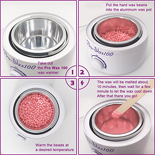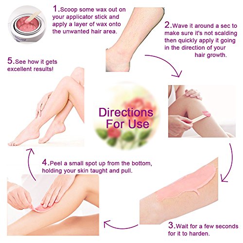 EASY TO APPLY: Heat the hard body wax to a working temperature by wax heater. Then using a spatula to stir the wax. Wait for 5 minutes to cool the wax beads and then spread a layer of film wax onto the area to be treated in the direction of the hair growth.