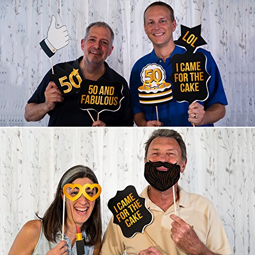 50th Birthday Props by PartyGraphix. Perfect for 50th Birthday Photo Booth Props Stand. Can be used as Decorations. 34 Black & Gold Pieces