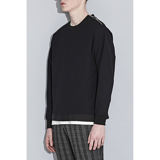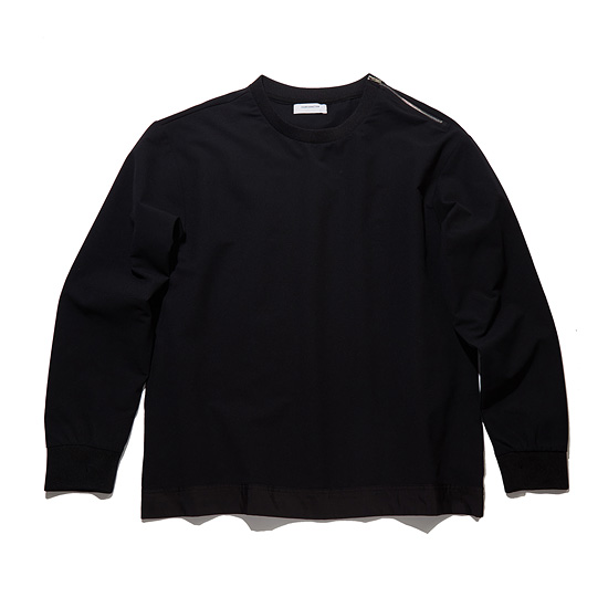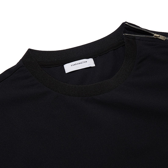 - 숄더 라인 지퍼 디테일로 오픈이 가능한 우븐 티셔츠.