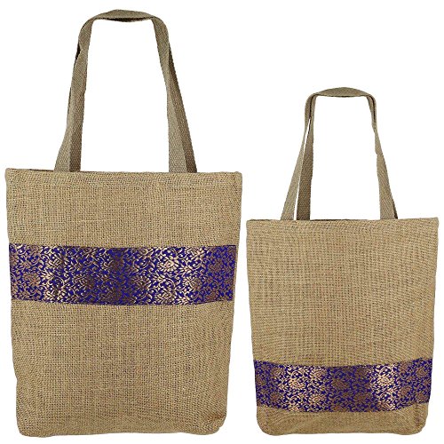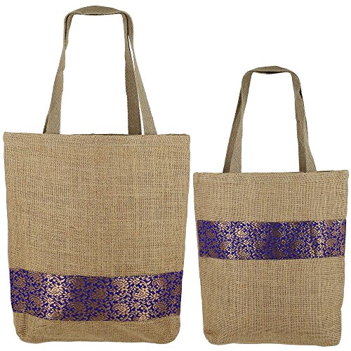 ShalinIndia - Set Of 2 Multipurpose Shopping Bags, Jute Shimmer,Natural Fiber-Eco Frienly